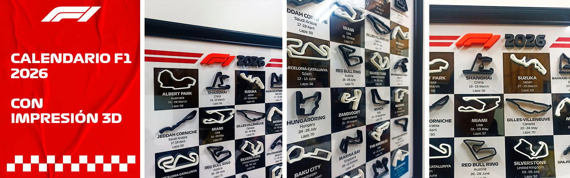 Cuadro Calendario F1 2026 Bandera a cuadros + 3D impresión