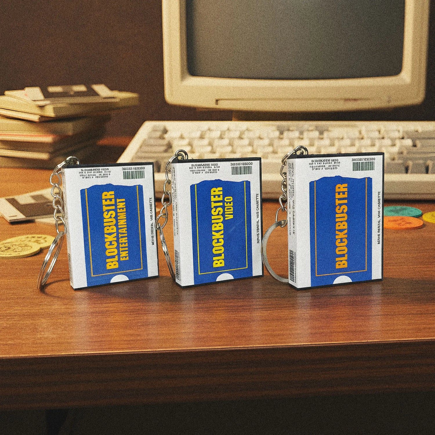 Estos llaveros estilo Blockbuster están inspirados en la estética icónica de los años 90.
